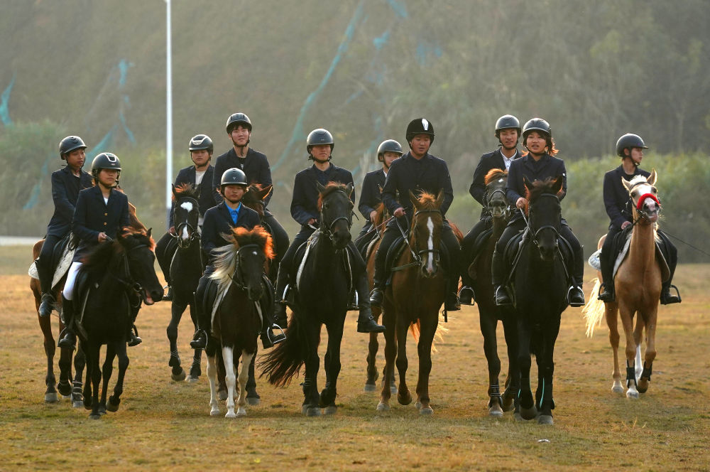 马术班学生在训练场上训练。新华社记者 万象 摄