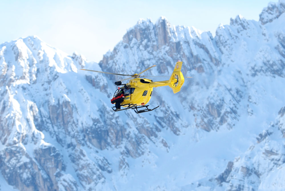 2月8日,一架直升机接走受伤的美国选手林赛·沃恩。新华社记者张晨霖 摄