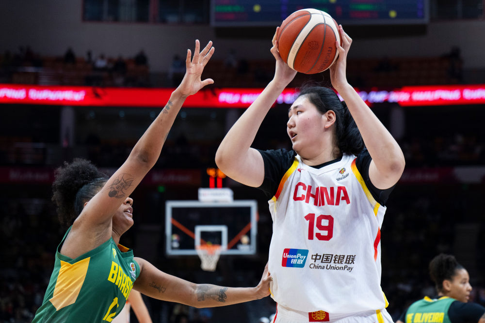 3月17日,在湖北武汉举行的2026年女篮世界杯资格赛A组比赛中,中国队83:71战胜巴西队。图为张子宇(右)在比赛中。新华社记者伍志尊 摄